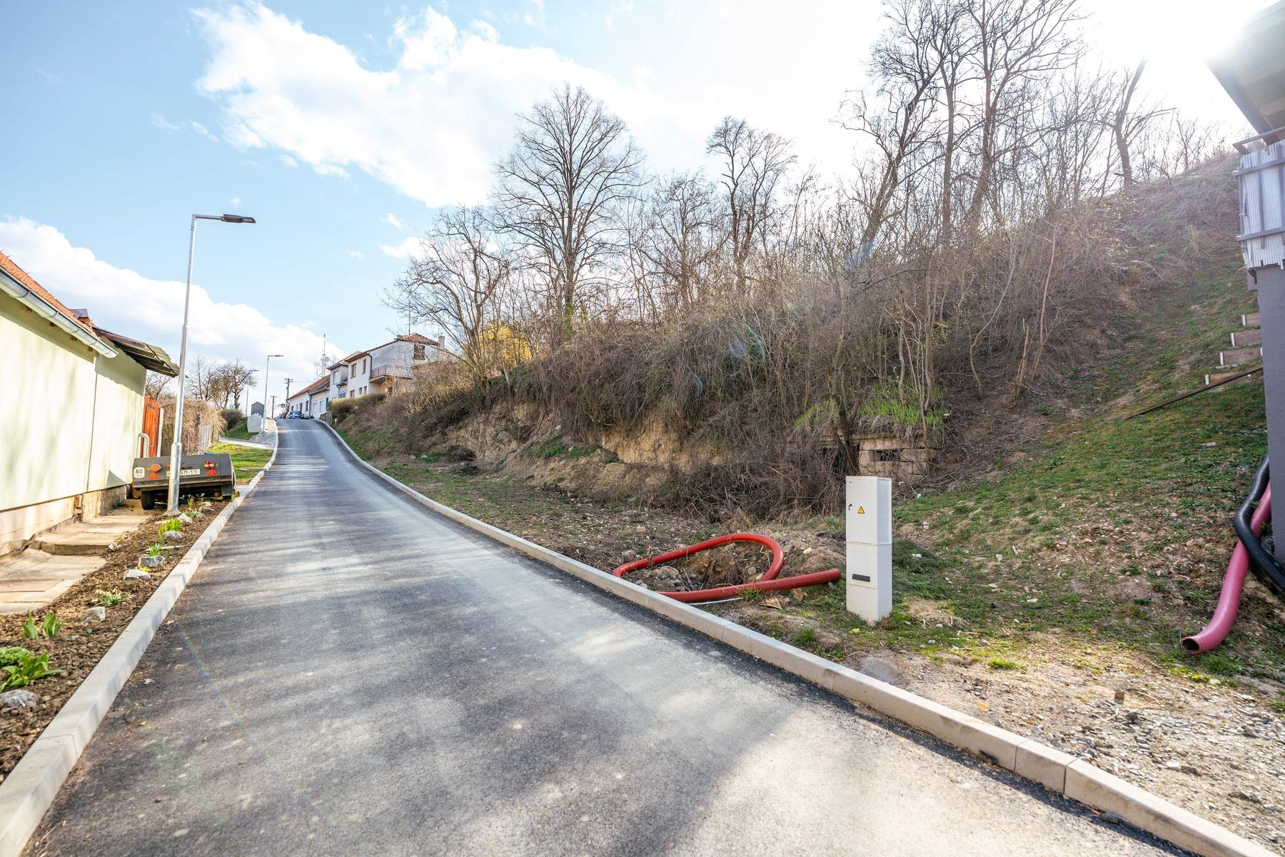 elektřina, kanalizace a vodovodní přípojka se nachází u pozemku